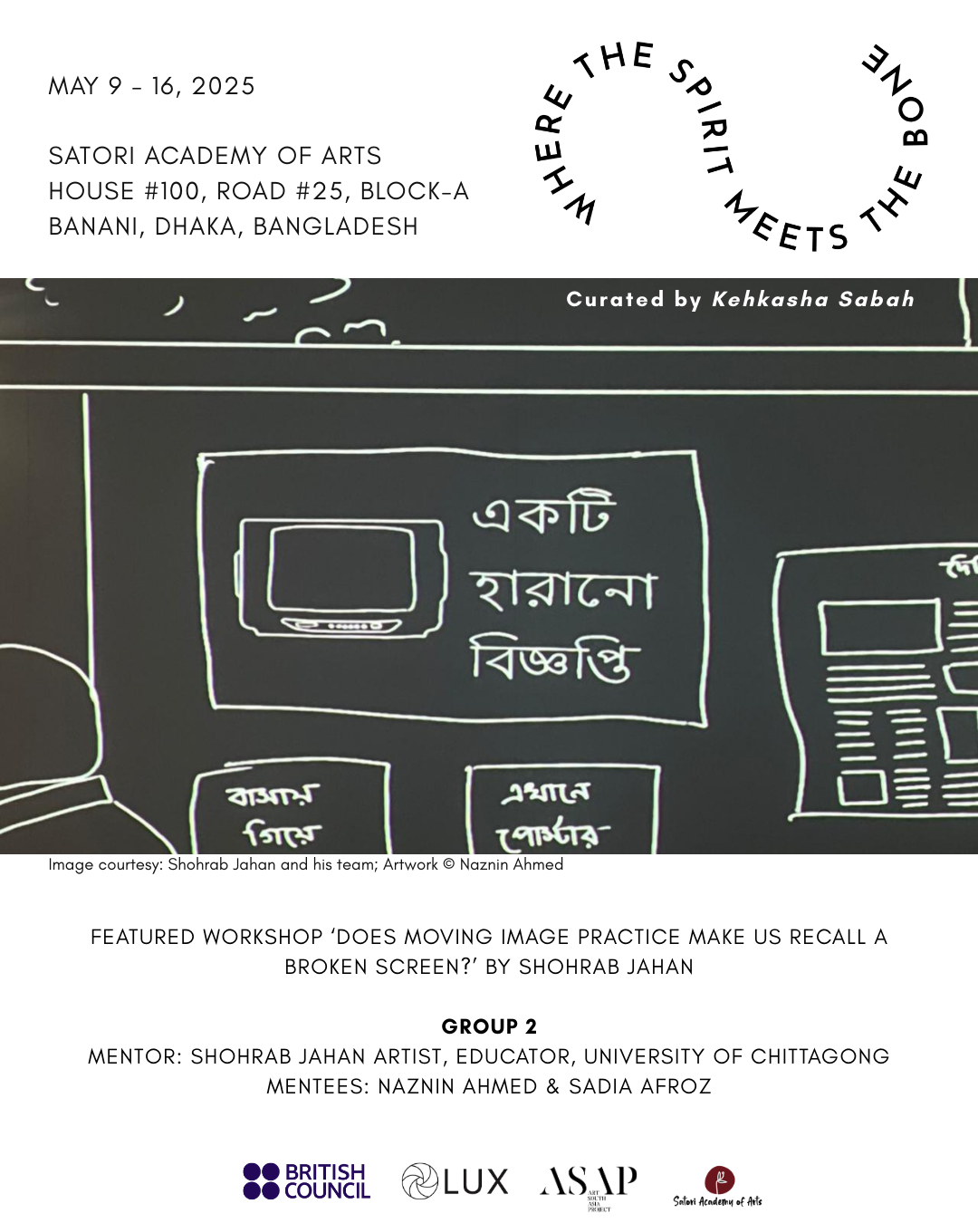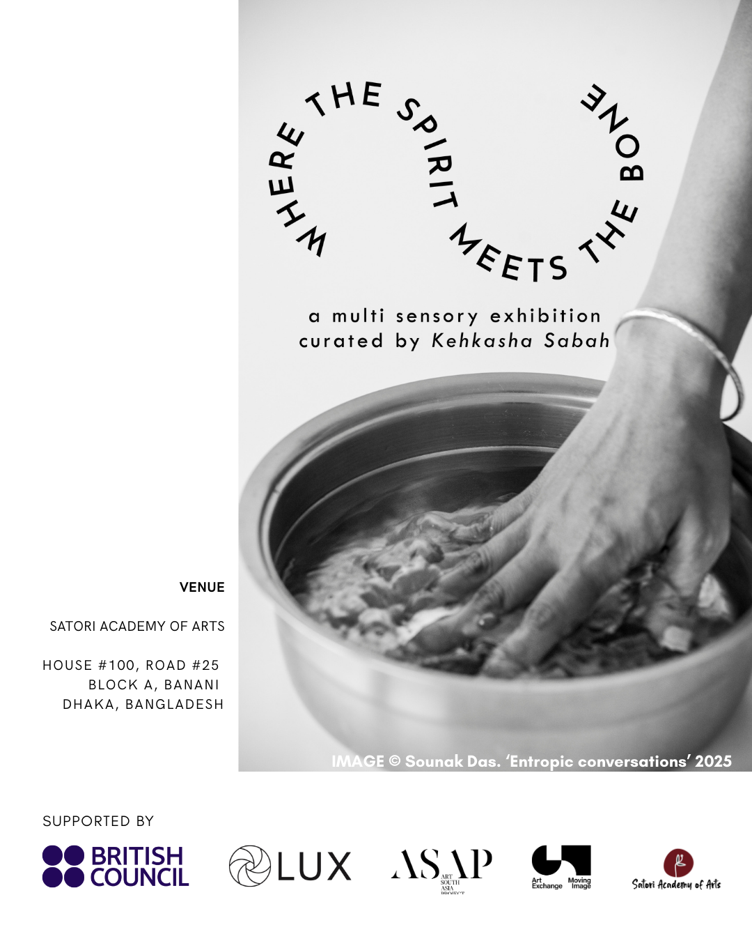 WHERE THE SPIRIT MEETS THE BONE – a two-fold exhibition from April 25 to May 16, 2025, at Satori Academy of Arts. This project reconsiders the concept of a 'moving image' through expanded programs, creating accessible platforms that encourage critical discussions.